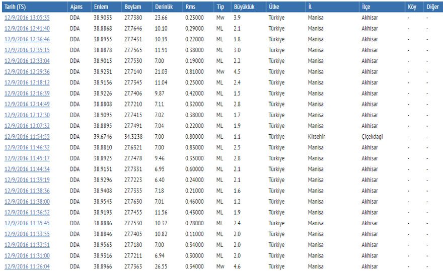 Boğaziçi Üniversitesi Kandilli Rasathanesi Deprem Araştırma Enstitüsü’nün merkez üssünü Akhisar’ın Doğuca Mevkii olarak saptadığı deprem saat 11.26’da meydana geldi. Yerin 13.6 kilometre derinliğinde meydana gelen deprem Manisa ve İzmir’de şiddetli olmak üzere geniş bir alanda hissedildi. İlk belirlemelere göre ölen ve yaralanan kimsenin olmadığı depremin, merkez üssüne yakın yerleşim alanlarında hasara neden olmadığı öğrenildi. Başbakanlık Afet ve Acil Durum Yönetimi Başkanlığı (AFAD) Deprem Veri Merkezi, aynı depremin büyüklüğünü 4,6 olarak duyurdu. AFAD, depremin derinliğini ise 22,92 km olarak açıkladı. AFAD’ın 4.6 olarak açıkladığı depremin ardından merkez üssü Akhisar olan çok sayıda depremin daha olduğu öğrenildi.