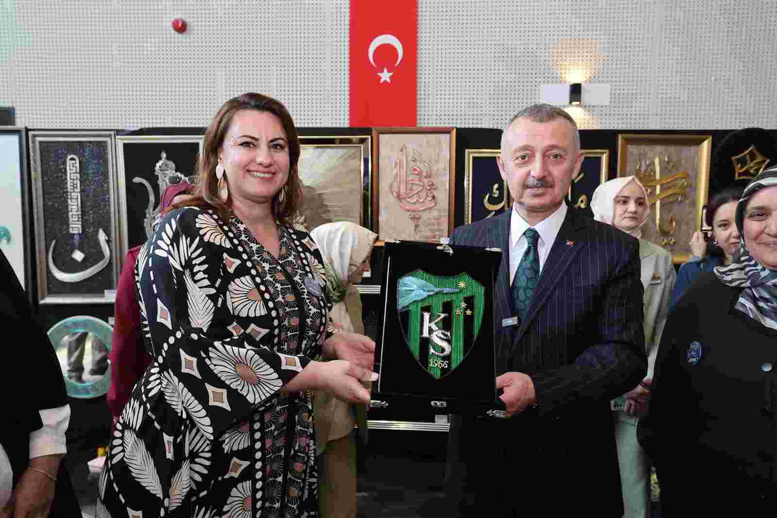 Konuşmaların ardından Başkan Büyükakın’a hüsn-i hat tablosu hediye edildi. Başkan Büyükakın da gelenek olduğu üzere, söz konusu tabloyu en yakın zamanda evlenecek bir kursiyere takdim etti. Daha sonra, geleneksel KO-MEK bohçasını nişanlı kursiyere hediye etti. Açılış kurdelesini kursiyerler ve çocuklarla birlikte kesen protokol üyeleri, sergi alanını gezerek el emeği göz nuru ürünleri inceledi. Ürünler hakkında bilgi alan Başkan Büyükakın, kursiyerleri kutladı.
