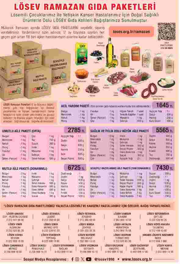 Türkiye’nin en güvenilen ve çalışkan Vakfı olan LÖSEV ile bağışların her kuruşunun ve her lokmasının yerini bulduğu, paylaşmanın ve dayanışmanın daha da önem kazandığı Mübarek Ramazan ayında, ihtiyacı olan Lösemili Çocuklar ile Yetişkin Kanser hastalarına iletilmek üzere, siz de doğal ve sağlıklı markaların ürünleri ile hazırlanmış LÖSEV GIDA PAKETLERİNİ seçebilir, sipariş verebilir, hastalarımızın yüzlerindeki gülümsemeye ortak olabilirsiniz.